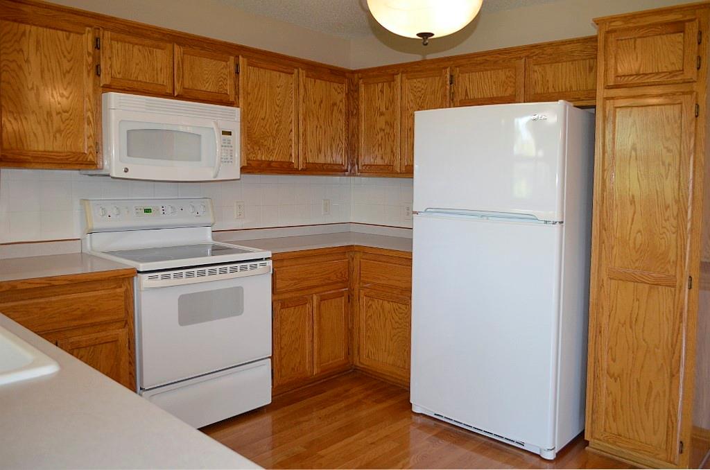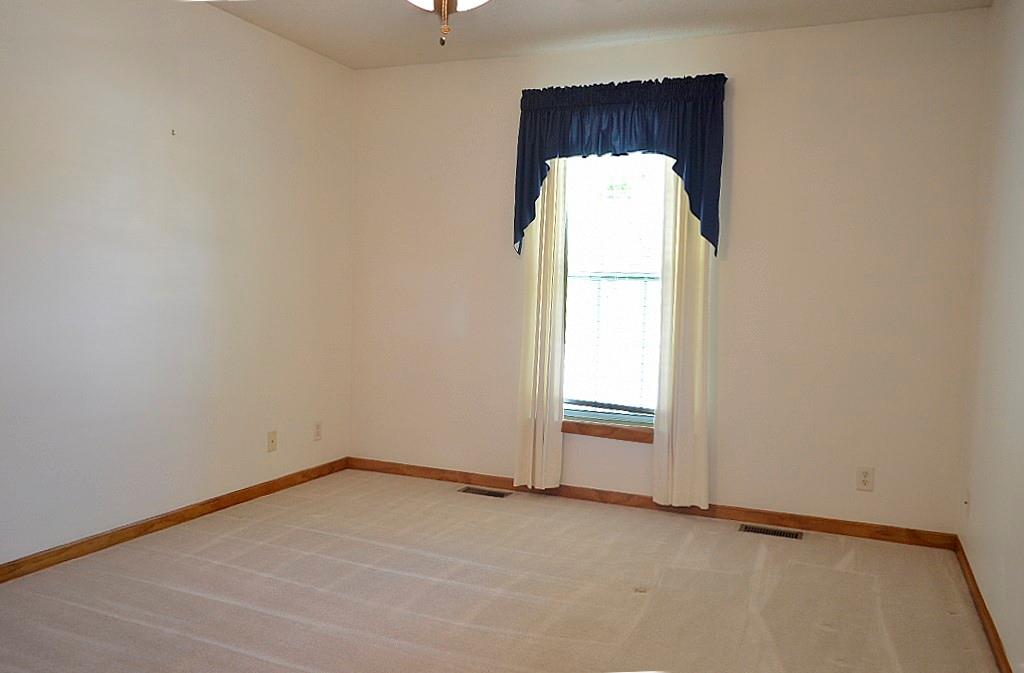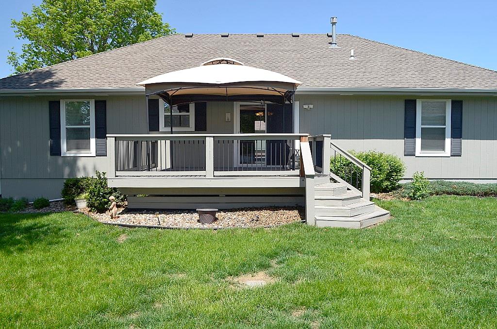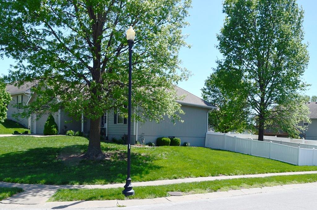 This meticulously maintained home shines with pride of ownership and offers the ease of true single-level living. The thoughtfully designed floor plan provides exceptional privacy, with the spacious primary suite set apart from bedrooms two and three at the opposite end of the home. Convenience abounds with main-level laundry tucked neatly into a generous closet just off the dining area. The kitchen is both bright and functional, featuring crisp white appliances and an efficient layout that makes everyday cooking feel effortless. Step outside to an oversized deck complete with a canopy—perfect for relaxing or entertaining throughout the spring and summer months. The fully fenced backyard, enclosed by a charming white fence, offers both shade and plenty of space to enjoy the outdoors. A coordinating storage shed provides ideal space for tools and seasonal items. Situated on a beautifully landscaped corner lot, the property is framed by mature, stately trees that enhance its curb appeal and sense of tranquility.