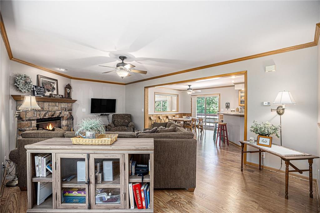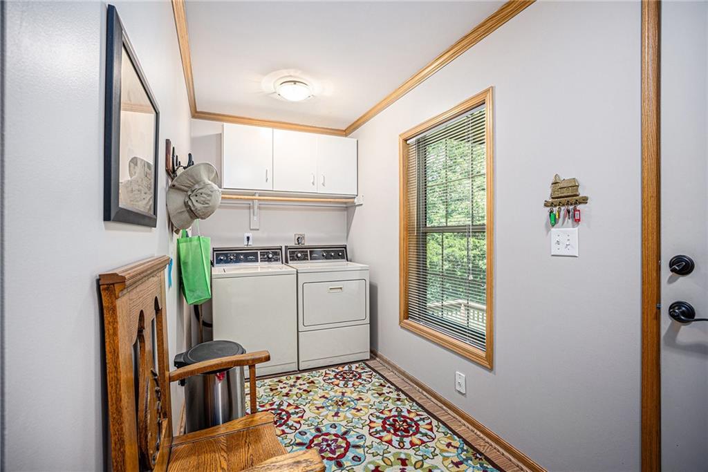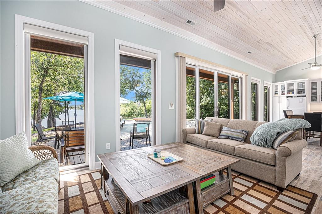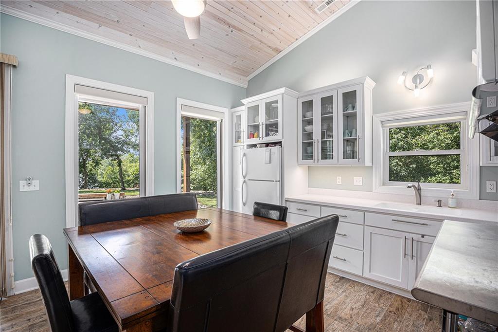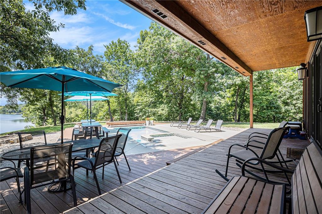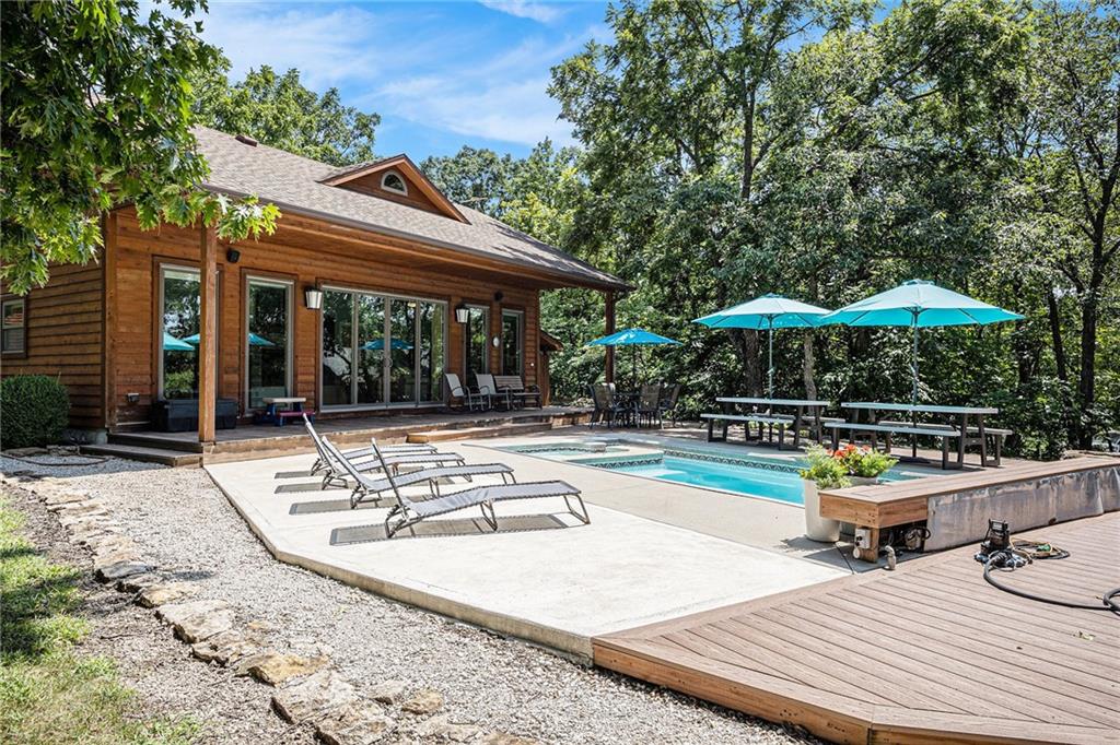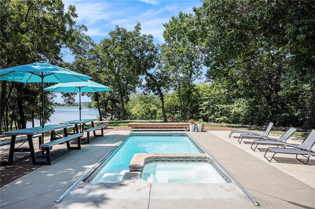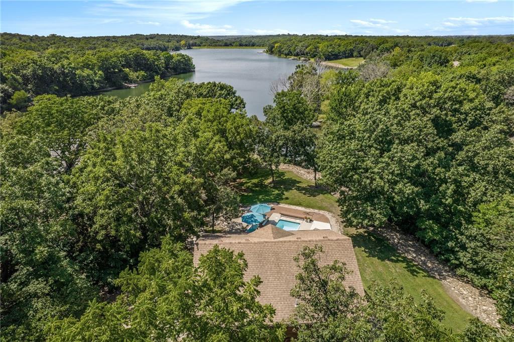 Welcome to your private lakeside oasis nestled in the tranquil shores of Timber Lake Estates, full time lake living only 45 minutes from south Overland Park! This stunning lake front property on 2.7 acres offers the perfect blend of serene natural beauty and comfort, featuring a beautifully appointed main lakefront home and a separate guest house — ideal for hosting family and friends. The main home showcases open-concept living with gorgeous lake views from the primary bedroom, a spacious kitchen with all appliances, a cozy fireplace, and large windows that flood the space with natural light. Down in the walk-out basement you’ll find a generous rec room, 2 bedrooms with a bathroom. The attached 4 ½ car garage provides plenty of storage for cars, boats and all the lake toys you might want. Step outside onto the expansive deck to enjoy morning coffee, peaceful sunsets, or entertain guests in a truly picturesque setting. Tucked just beyond the main house, the guest home provides 2 bedrooms, bathroom, dining area, and great room with large double sliding glass doors that open to the beautiful heated, saltwater pool overlooking the lake, surrounded by lush landscaping and ample patio space, creating the ultimate spot for summer relaxation and gatherings. Water ski or just relax in the lake during the day, paddle board from your private dock as the sun sets in this beautiful peaceful setting. Hike along the community trails to find wildlife, s'mores by your campfire, hold fishing tournaments with family/friends in this lovely home designed for everyone to enjoy. Whether you're seeking a peaceful year-round residence, a weekend getaway, this property at Timber Lake Estates is a rare find. Come experience lake living at its finest. Schedule your private tour today!