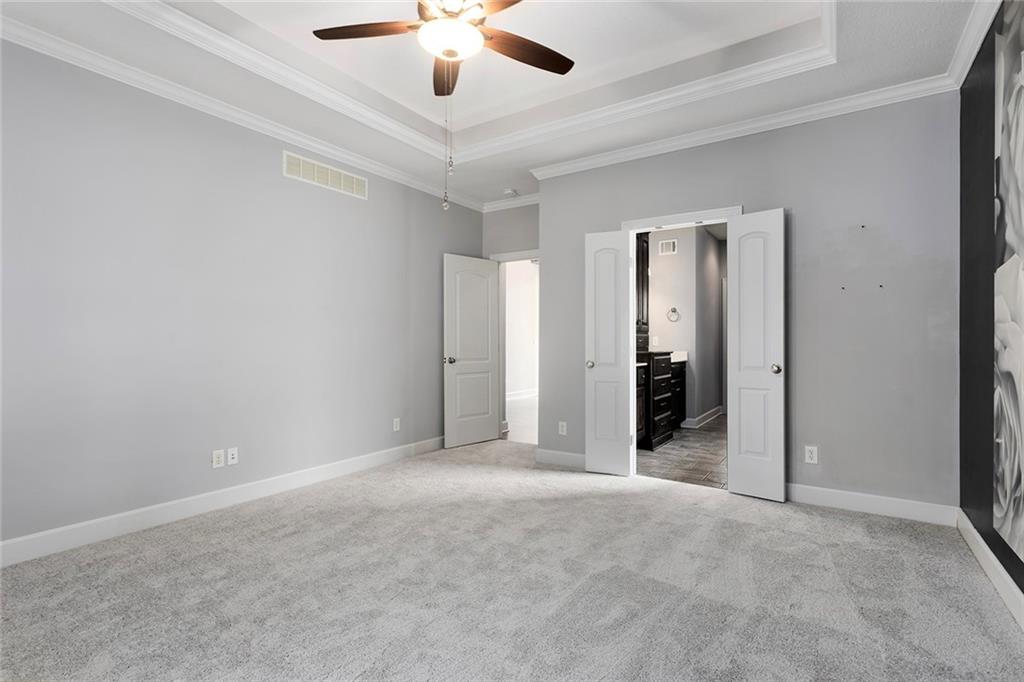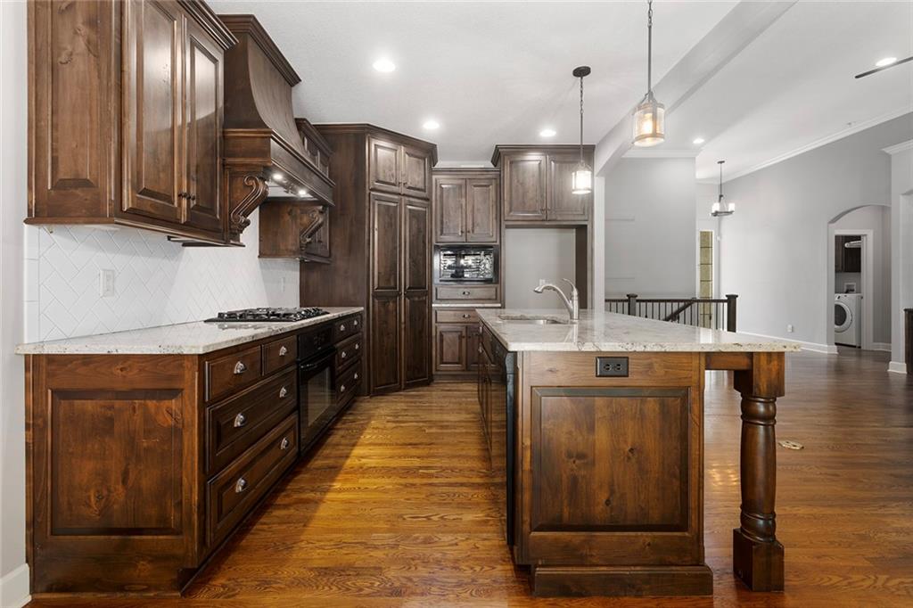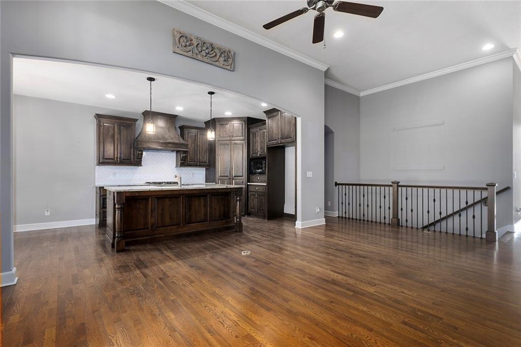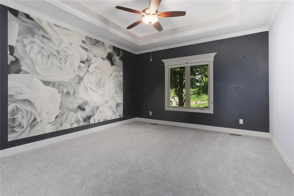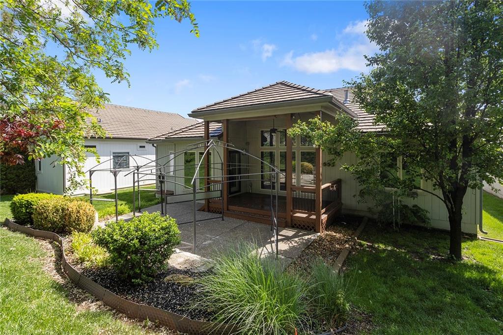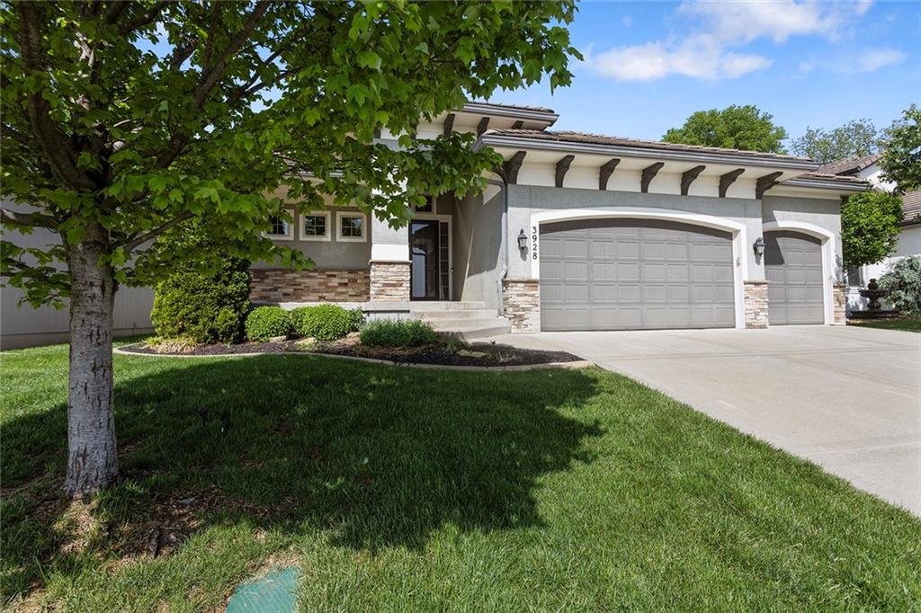 MAINTENANCE PROVIDED VILLA IN CHAPEL RIDGE AT LAKEWOOD - 2 bedroom, 2 bath, 3 car garage with another 1600 sq ft of unfinished basement with egress window and bath stub, creating outstanding future potential for additional bedrooms or recreation space. Gorgeous millwork and custom cabinetry in a French Provincial style with wood floors, granite countertops, a statement range hood, and rustic fixtures. The spacious primary suite offers comfort and function with dual vanities, a walk-in shower, and a large closet that connects to the laundry room. The separate office nook and a lovely covered patio are bonus features of this beautiful home. No mowing or snow shoveling, so there's plenty of time to enjoy all the amenities Lakewood has to offer, including pools, clubhouse, tennis courts, boat rentals, and lake recreation. Conveniently located near shopping, dining, medical services, and commuter routes. A fantastic opportunity for low-maintenance living in one of Lee's Summit's most established communities.