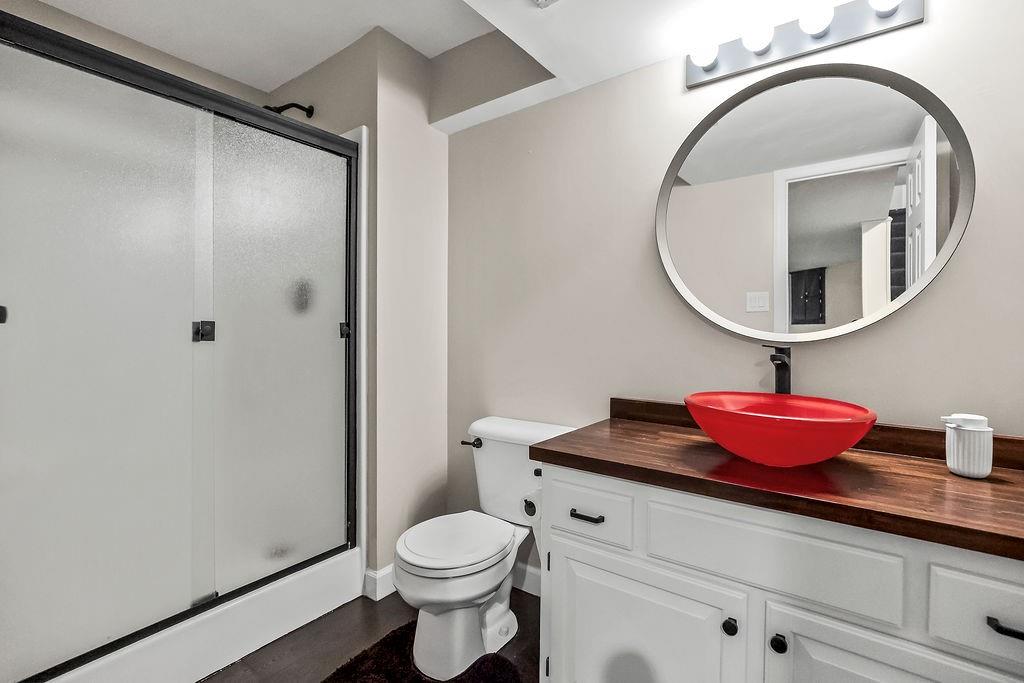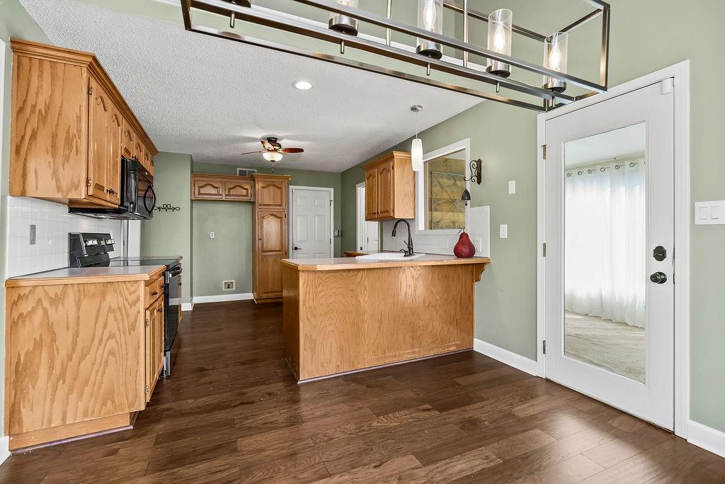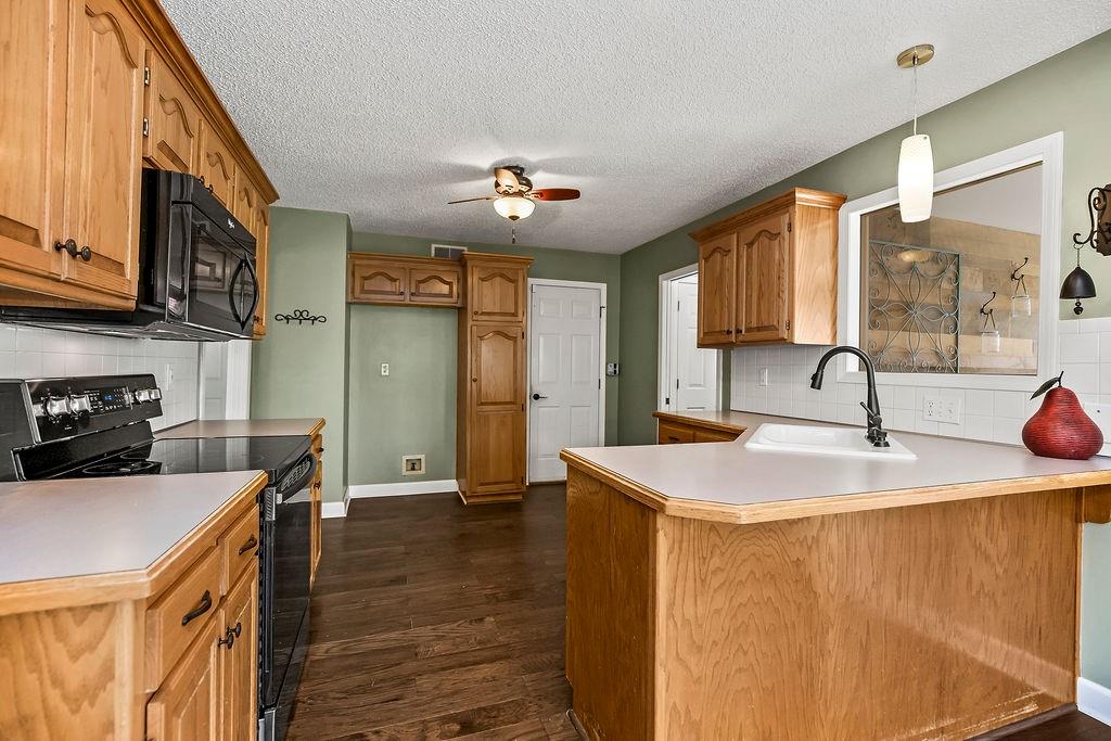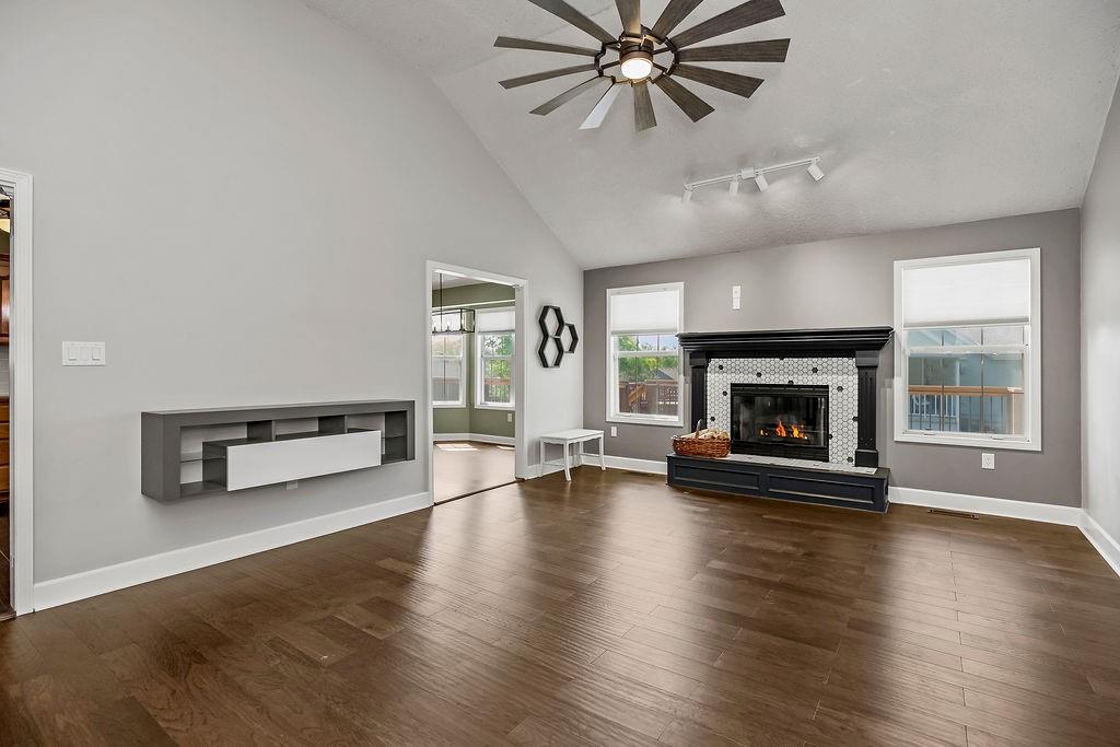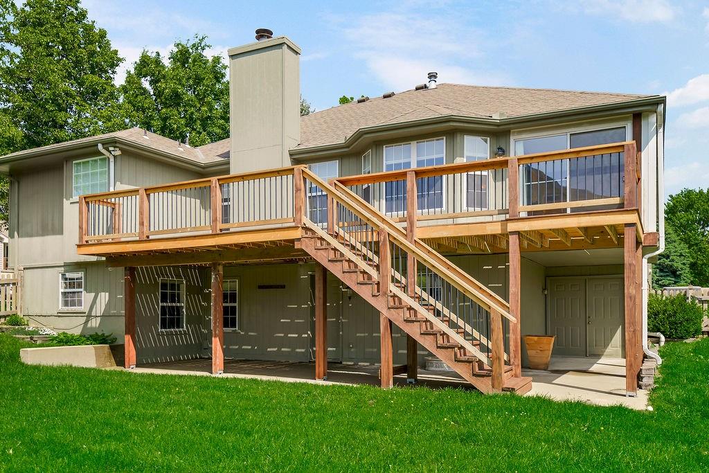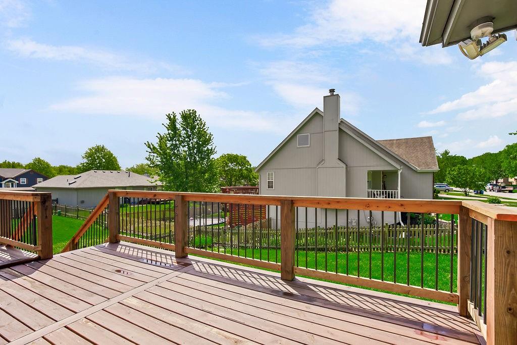Step into comfort and charm with this well-maintained home, thoughtfully updated and ready for its next chapter. The family room impresses with a vaulted ceiling and a cozy wood-burning fireplace featuring a custom tile surround. The kitchen offers classic oak cabinetry, a tile backsplash, woodband edge countertops, and a pantry, while the adjacent breakfast room is filled with natural light from a lovely bay window. Just beyond, enjoy year-round relaxation in the 3-season room, complete with carpet and an electric fireplace. The primary suite features a trey ceiling and a spacious walk-in closet, along with an en-suite bath showcasing tile floors, a cultured marble shower and vanity, and a tile surround. All bedrooms are generously sized and include ceiling fans for added comfort. The second bath has been refreshed with a new tile floor, vanity, and includes a shower/tub combo and skylight. The walkout lower level provides even more living space including a rec room, true fourth bedroom, and full bath. Durable LVP flooring expands the whole lower level. Outside, a brand-new deck spans the entire back of the home—perfect for entertaining or unwinding—overlooking a fully fenced yard. To top it off, the HVAC system is just 2 years old, offering peace of mind for years to come. The home is equipped with a lift from the garage to the kitchen, so no steps! Perfect for a wheelchair or for those who prefer not to use stairs! Just installed and a $10,000 value! Mature trees, gorgeous yard and the perfect floorplan! And, there is an exterior door to the basement for yard tools and your mower! Which makes so much more room in the garage! You are going to love it!