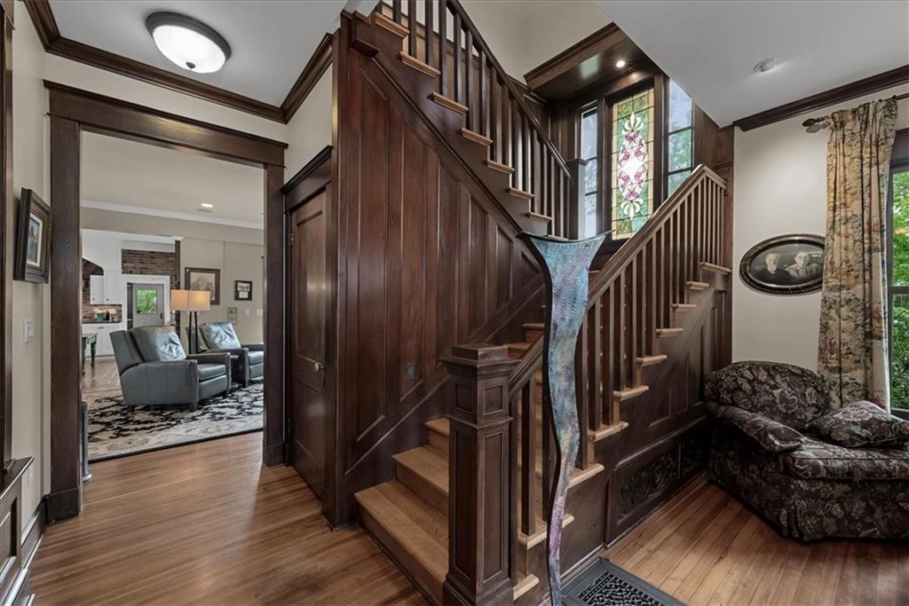Hands down, the most unique and carefully restored historic home in the heart of Blue Springs. Nothing rivals this home as no expense was spared in completely restoring this 1908 beauty, and then taking it well beyond even the original build with a large addition including 2 car garage and additional living space above, plus a complete makeover of the detached carriage house which includes a third garage space, storage, a finished lower level studio with full bathroom and a studio apartment on the upper floor with its own driveway, access, kitchen, full bathroom, and laundry. This is better than new construction with high-end finishes throughout, and still the advantage of new everything - from completely new underground utilities for water, electric, gas, and sewer, to energy efficient spray foam insulation in all exterior walls, to the expensive, period-appropriate new double pane thermal wood windows. You'll be charmed by the spacious open level, thanks to engineered beams and posts that allow for a super open layout with the chef's kitchen as the centerpiece. Many of the 100+ year old materials were repurposed on the main level including douglas fir shiplap that is now the eat-in kitchen ceiling, or the original barn wood that is now a bartop between the two decorative shelves that frame the kitchen. There's even original stained glass in the grand staircase! Outside is a gardener's paradise with a sprinkler system that covers every square inch and a meticulously manicured yard, maintained by a master gardener. It's the entertainer's dream with the dedicated hot tub area, beautiful built-in brick fireplace, plus the state-of-the-art swim spa that stays with the home. The primary suite is a dream with vaulted ceilings and a giant bathroom with dual vanities and a cavernous walk-in double shower. Walk-in closets galore and tons of storage. Documentation for virtually everything. This is truly a once-in-a-lifetime opportunity. Preapproval required for showing!