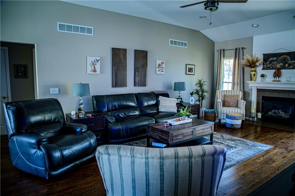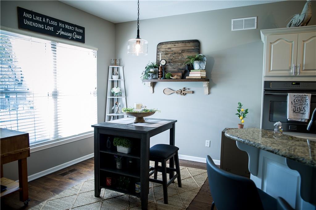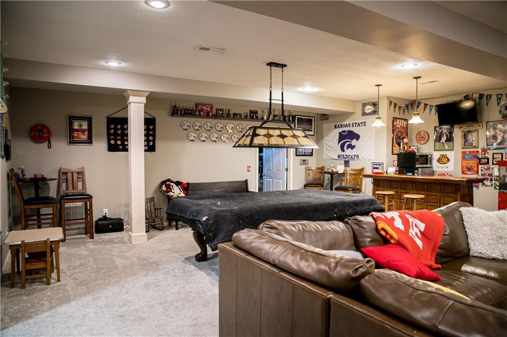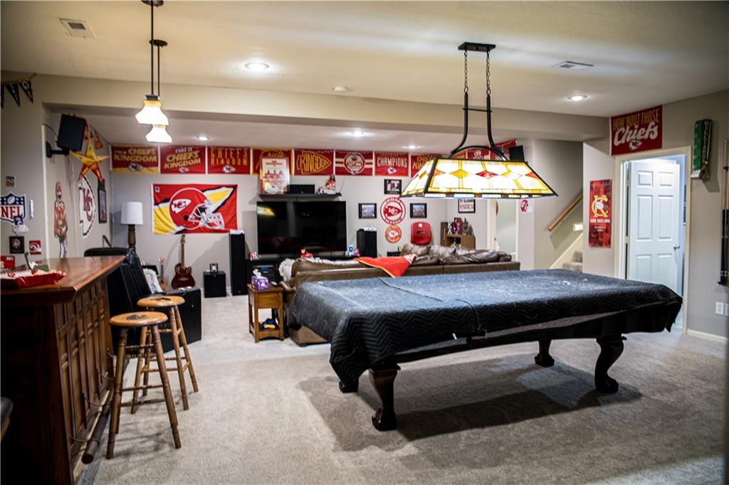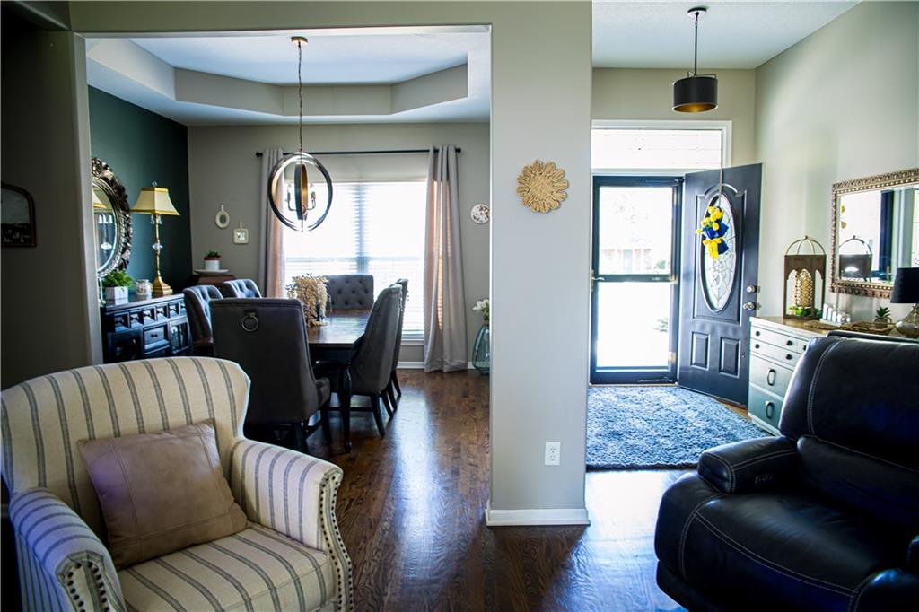 This home has been tastefully decorated and meticulously maintained. It's so stunning it could be on HGTV. Hardwood floors throughout the main level, with a tiled laundry room. Rooms are spacious, especially the master ensuite. In fact, there are two master ensuites: one on the main level and the other in the lower level. The lower level master bath has heated floors and the LL walk-in closet includes the 2nd laundry hook-up. There is a family room with a game area and bar in the LL, as well. Updates to the home include a new water heater, all flooring, light fixtures and ceiling fans, furnace, water softener, roof and cooktop. The backyard is enticing with a covered patio and a separate cement pad for additional entertaining. The newer Basehor Elementary School is within walking distance, and the HOA provides a swimming pool, shelter, and basketball court. Don't miss this stunning home!