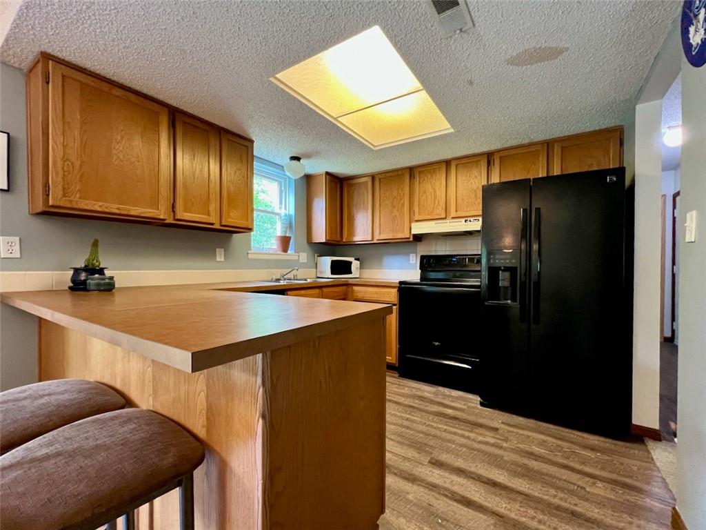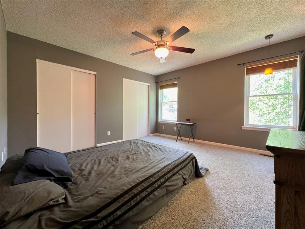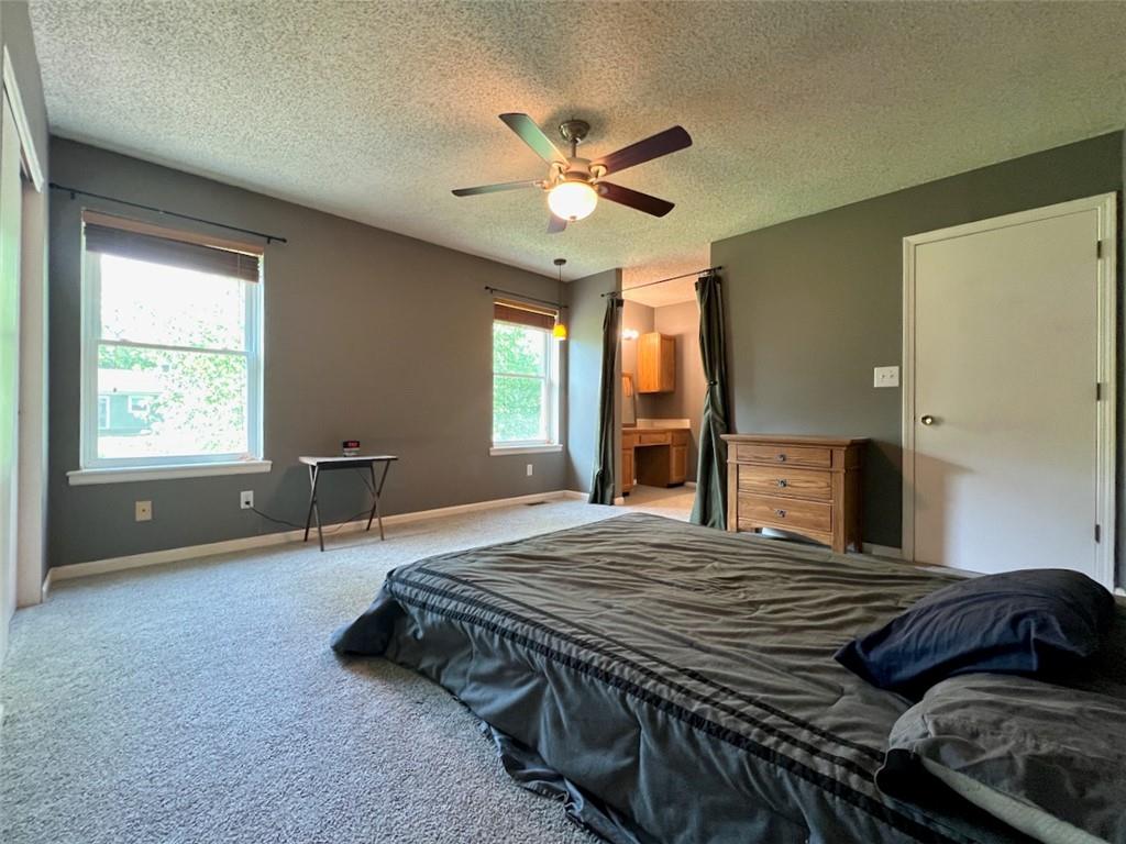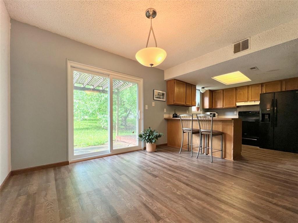 Light-filled living spaces and tall ceilings set the tone in this southwest Lawrence home, with an easy flow between the living, kitchen, and dining areas. The flexible layout includes a main-level bedroom with an attached bonus space, well suited for a closet, office, or additional living area, with a door for added privacy. Upstairs are two generously sized bedrooms, including the primary bedroom with a built-in countertop area just outside the bathroom, offering additional space for daily routines or workspace needs. Recent updates include an 8-year-old roof, newer windows throughout (excluding the front window), a 4-year-old AC, and a newly installed tub in the upstairs bathroom. The fully fenced backyard features mature trees, ample shade, and a patio, providing a comfortable setting for outdoor use. Tucked away on a quieter street with convenient access throughout Lawrence and to major routes.