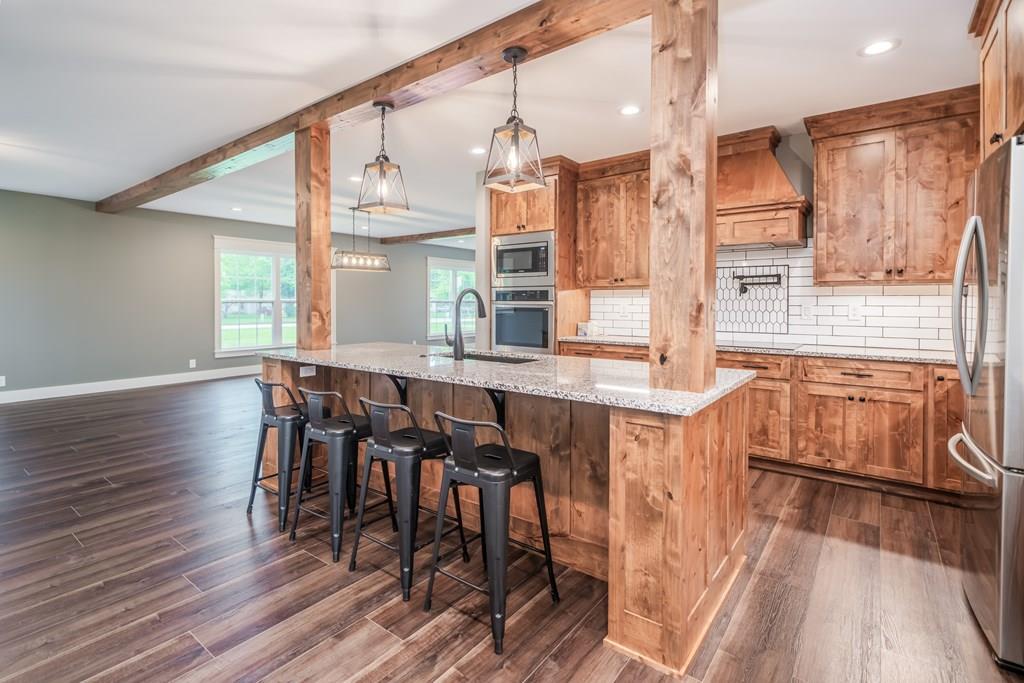 Discover this impeccably renovated 3,400 sq ft Craftsman home situated on 1.6 acres. While this home is nearly 100 years old the only original feature is the skeleton, yet it retains its timeless charm. From the outside, the home welcomes you with a beautifully crafted brick sidewalk leading to an expansive and inviting living space on the main level. The flooring in the living spaces are a stone polymer composite flooring, which is waterproof and more durable. This area seamlessly integrates the living room, dining area, and a state-of-the-art kitchen. The kitchen is a true centerpiece, boasting beautiful Knotty Alder Amish cabinets, granite countertops, and stainless steel appliances, along with countless exquisite details and upgrades. Beyond the kitchen is a large Mud Room and Bathroom. Also on the main level is the luxurious primary bedroom, complete with a private bathroom that includes a tiled shower and beautiful soaker tub. Walk past the bathroom into a spacious walk-in closet. Venture to the upper level to find three generously sized bedrooms, each with large closets. There is also a bathroom on the upper level as well. One of the home's unique features is a secret room, perfect for storage or as a magical space for little ones. Every aspect of this home has been completely updated, including the sewer system, electrical, HVAC, roof, and Low-E windows. As an added bonus, the seller is offering a $4,000 fence allowance.